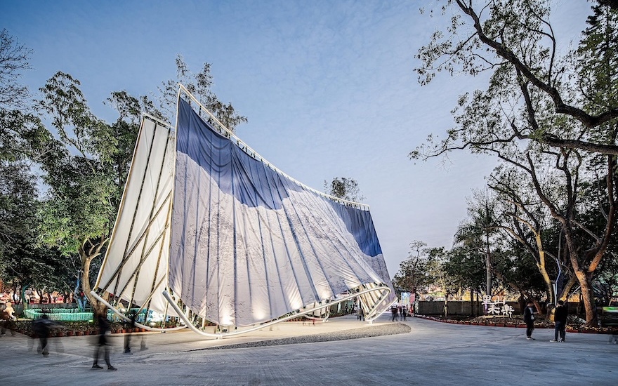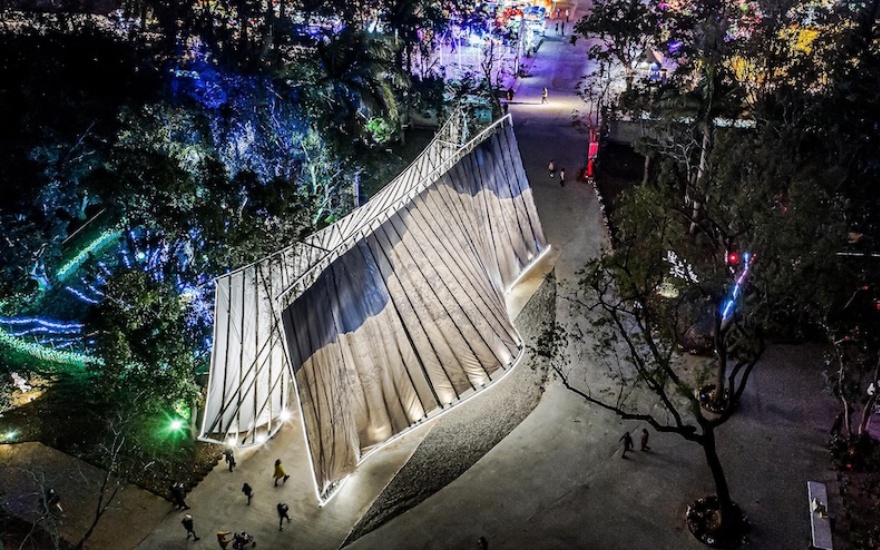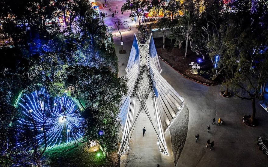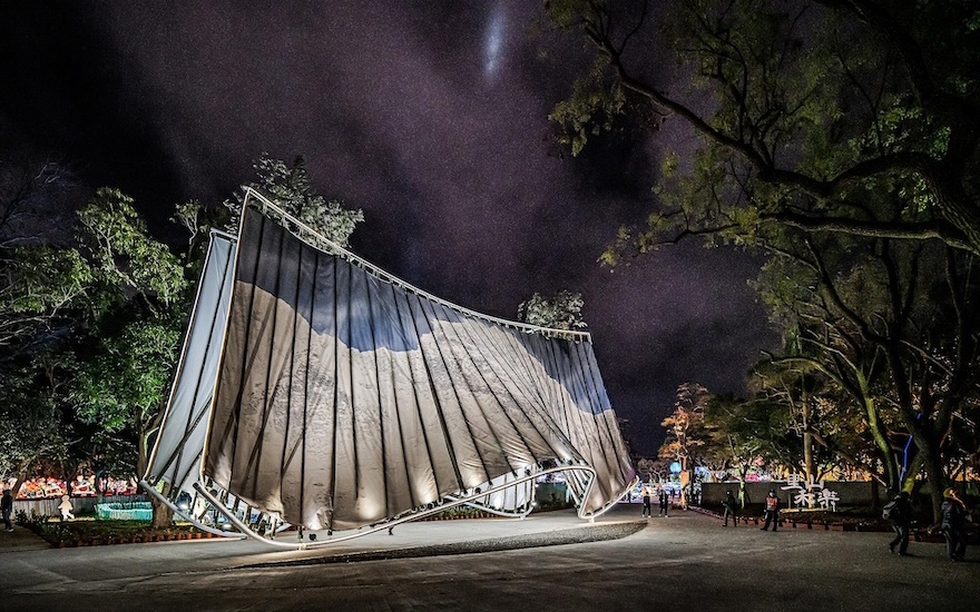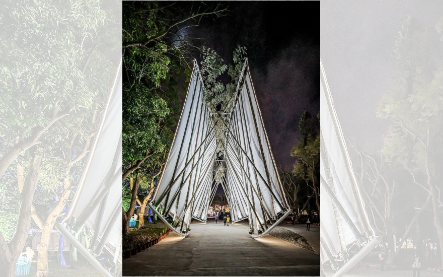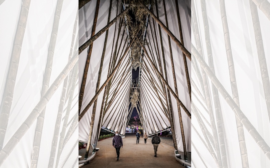2020台灣燈會在台中后里花博森林園區的「里山禾樂」燈區。由一群建築師、策展人、藝術家組成團隊,用自身生命經驗閱讀自山脈到樹林的台灣脈絡,提出另一種地景美學「新台灣燈會」。
