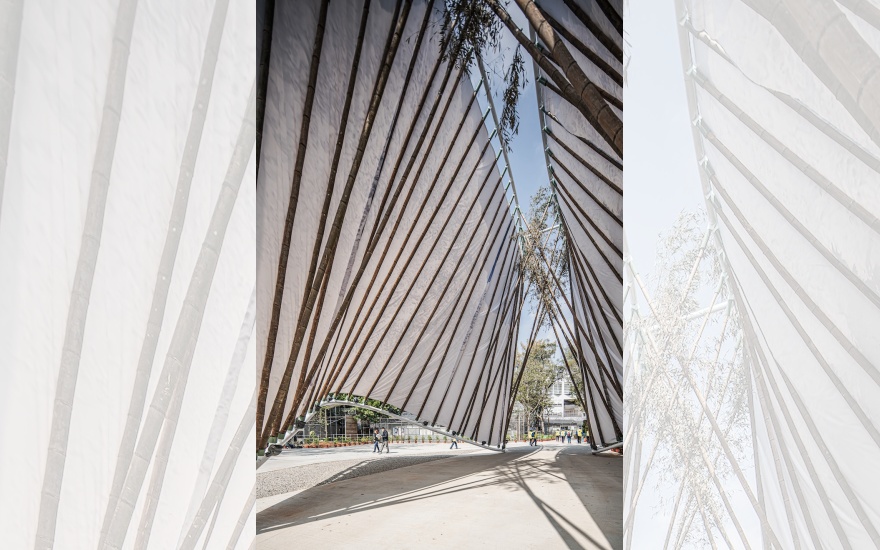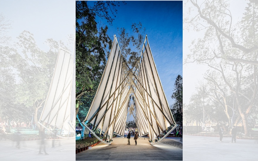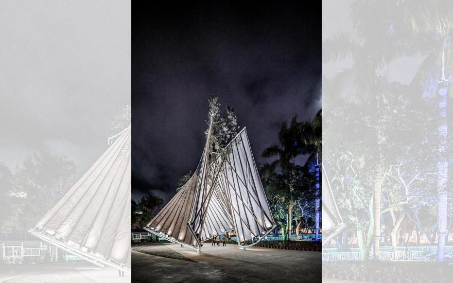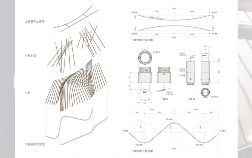 構造材料:上下鋼構框架、孟宗竹、帆布印刷